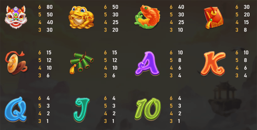 以下這些符號是根據聚寶財神計算贏分時,將這些符號計算成單個符號,所有贏分以 1 為投注倍數。